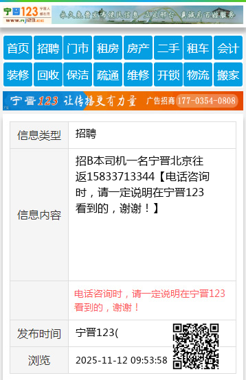 招B本司机一名宁晋北京往返15833713344
