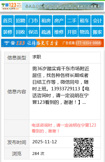 男36岁踏实肯干东市场附近居住,找各种各样长期或者日结工作等,微信同号,随时上班。13933729113