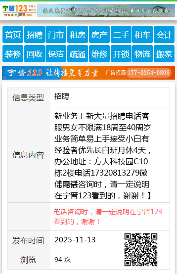 新业务上新大量招聘电话客服男女不限满18周至40周岁业务简单易上手接受小白有经验者优先长白班月休4天,办公地址:方大科技园C10栋2楼电话17320813279微信同号