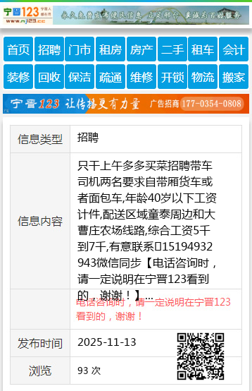 只干上午多多买菜招聘带车司机两名要求自带厢货车或者面包车,年龄40岁以下工资计件,配送区域童泰周边和大曹庄农场线路,综合工资5千到7千,有意联系15194932943微信同步 【电话咨询时,请一定说明在宁晋123看到的,谢谢!】 |