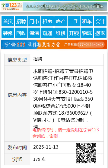 求职招聘-招聘宁晋县招聘电话销售:工作内容打电话加微信跟客户小白可教女:18-40岁上班时间:830-1200110-530月休4天有节假日底薪3500提成综合薪资5000上不封顶联系方式:18736009627(V信同号) 【电话咨询时,请一定说明在宁晋123看到的,谢谢!】 |