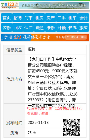 【家门口工作】中和农信宁晋分公司现招聘客户经理,薪资4500元--9000元入职就交五险一金(公积金),男女均可有销售经验者优先。地址:宁晋县状元路污水处理厂对面中和农信联系方式:182339332 【电话咨询时,请一定说明在宁晋123看到的,谢谢!】 |