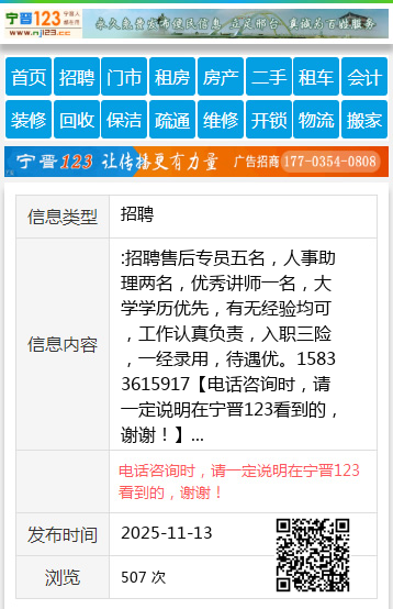 【电话咨询时,请一定说明在宁晋123看到的,谢谢!】 |