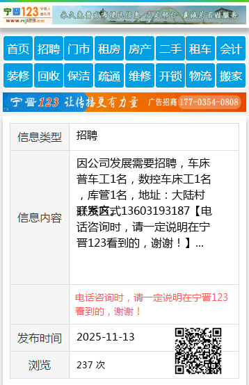 免责声明:本栏目信息由网友自行发布,宁晋123不承担任何责任!提高警惕,谨防诈骗!做推广、做信息置顶!请加宁晋123客服微信:ningjin009