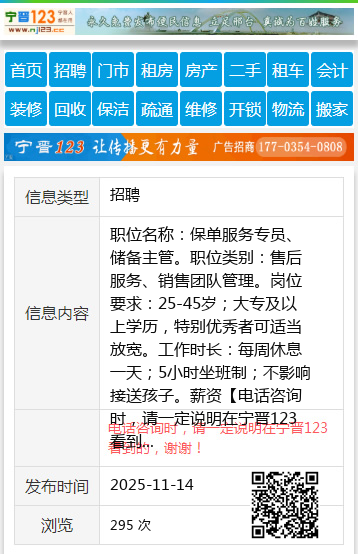 职位名称:保单服务专员、储备主管。