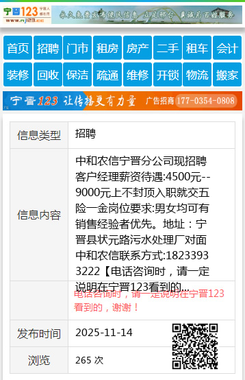 中和农信宁晋分公司现招聘客户经理薪资待遇:4500元--9000元上不封顶入职就交五险一金岗位要求:男女均可有销售经验者优先。地址:宁晋县状元路污水处理厂对面中和农信联系方式:18233933222 【电话咨询时,请一定说明在宁晋123看到的,谢谢!】 |