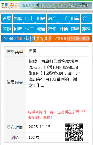 免责声明:本栏目信息由网友自行发布,宁晋123不承担任何责任!提高警惕,谨防诈骗!做推广、做信息置顶!请加宁晋123客服微信:ningjin009