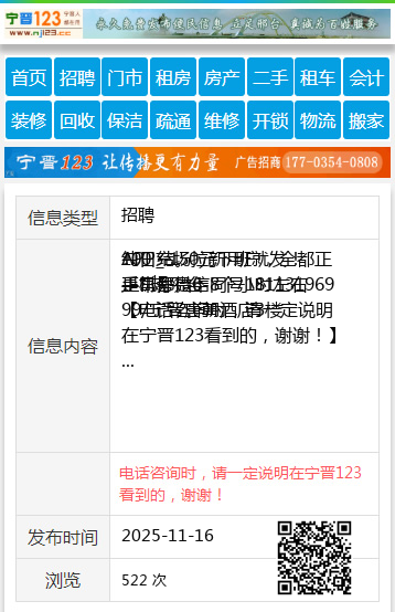 【电话咨询时,请一定说明在宁晋123看到的,谢谢!】 |
