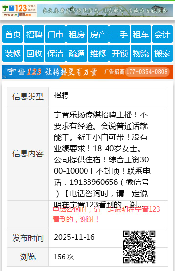 | 防骗提醒: | 宁晋123(www.nj123.cc)提醒您:手工活、网络兼职、刷单,都是骗子!凡以各种名义收取费用的都是骗子!找工作是往兜里挣钱,让你往外掏钱的都是骗子!异地招聘请提高警惕,谨防诈骗! |