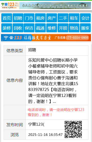 | 防骗提醒: | 宁晋123(www.nj123.cc)提醒您:手工活、网络兼职、刷单,都是骗子!凡以各种名义收取费用的都是骗子!找工作是往兜里挣钱,让你往外掏钱的都是骗子!异地招聘请提高警惕,谨防诈骗! |