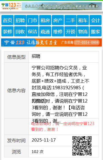 打电话时,请说明在宁晋123看到的,谢谢! 【电话咨询时,请一定说明在宁晋123看到的,谢谢!】 |