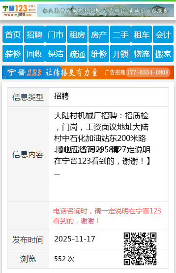 免责声明:本栏目信息由网友自行发布,宁晋123不承担任何责任!提高警惕,谨防诈骗!做推广、做信息置顶!请加宁晋123客服微信:ningjin009