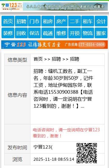 | 防骗提醒: | 宁晋123(www.nj123.cc)提醒您:手工活、网络兼职、刷单,都是骗子!凡以各种名义收取费用的都是骗子!找工作是往兜里挣钱,让你往外掏钱的都是骗子!异地招聘请提高警惕,谨防诈骗! |