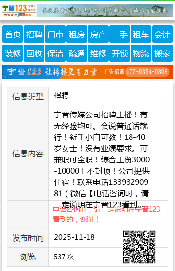 宁晋传媒公司招聘主播!有无经验均可。会说普通话就行!新手小白可教!18-40岁女士!没有业绩要求。可兼职可全职!综合工资3000-10000上不封顶!公司提供住宿!联系电话13393290981(微信 【电话咨询时,请一定说明在宁晋123看到的,谢谢!】 |