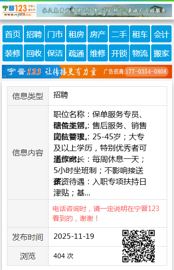 | 防骗提醒: | 宁晋123(www.nj123.cc)提醒您:手工活、网络兼职、刷单,都是骗子!凡以各种名义收取费用的都是骗子!找工作是往兜里挣钱,让你往外掏钱的都是骗子!异地招聘请提高警惕,谨防诈骗! |