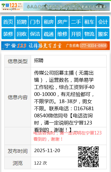 传媒公司招募主播(无需出镜),运营数名,简单易学工作轻松,综合工资到手4000-10000,有无经验都可,不限学历。18-38岁,男女不限。联系电话:16768108540微信同号 【电话咨询时,请一定说明在宁晋123看到的,谢谢!】 |