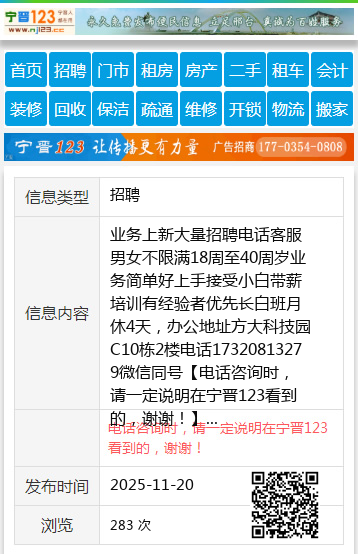 业务上新大量招聘电话客服男女不限满18周至40周岁业务简单好上手接受小白带薪培训有经验者优先长白班月休4天,办公地址方大科技园C10栋2楼电话17320813279微信同号 【电话咨询时,请一定说明在宁晋123看到的,谢谢!】 |
