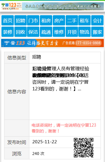 工作地点:宁晋县城 【电话咨询时,请一定说明在宁晋123看到的,谢谢!】 |