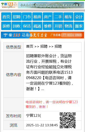招聘兼职外账会计,货运物流行业,开票报税,有会计证有行业经验能独立处理税务方面问题的联系电话15130948220