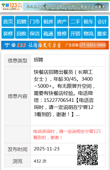 免责声明:本栏目信息由网友自行发布,宁晋123不承担任何责任!提高警惕,谨防诈骗!做推广、做信息置顶!请加宁晋123客服微信:ningjin009