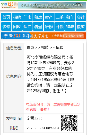 河北李可线缆有限公司:招聘长期业务经理3名,要求25岁至40岁,有业务经验的优先,工资面议有意者电联:13473195550李经理 【电话咨询时,请一定说明在宁晋123看到的,谢谢!】 |