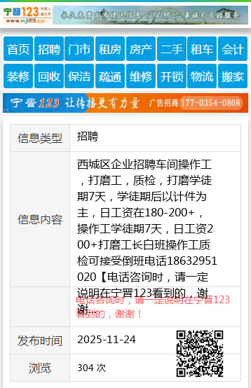 | 防骗提醒: | 宁晋123(www.nj123.cc)提醒您:手工活、网络兼职、刷单,都是骗子!凡以各种名义收取费用的都是骗子!找工作是往兜里挣钱,让你往外掏钱的都是骗子!异地招聘请提高警惕,谨防诈骗! |