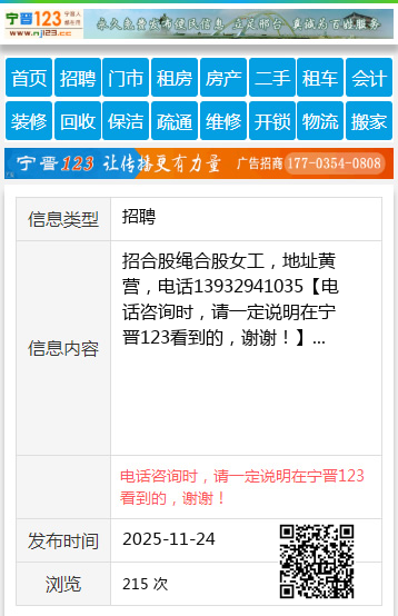 免责声明:本栏目信息由网友自行发布,宁晋123不承担任何责任!提高警惕,谨防诈骗!做推广、做信息置顶!请加宁晋123客服微信:ningjin009