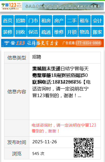 联系电话:18832198756 【电话咨询时,请一定说明在宁晋123看到的,谢谢!】 |