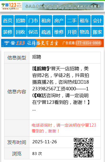 【电话咨询时,请一定说明在宁晋123看到的,谢谢!】 |