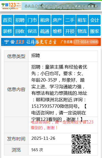 招聘:童装主播.有经验者优先;小白也可。要求:女、年龄20-35岁,形象好、踏实上进、学习沟通能力强,有想法有能力想搞钱的.地址:颐和绿洲北区附近.详询:15175935770微信同号。 【电话咨询时,请一定说明在宁晋123看到的,谢谢!】 |
