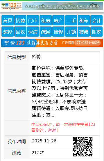| 防骗提醒: | 宁晋123(www.nj123.cc)提醒您:手工活、网络兼职、刷单,都是骗子!凡以各种名义收取费用的都是骗子!找工作是往兜里挣钱,让你往外掏钱的都是骗子!异地招聘请提高警惕,谨防诈骗! |
