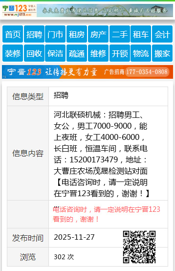 河北联硕机械:招聘男工、女公,男工7000-9000,能上夜班,女工4000-6000,长白班,恒温车间,联系电话:15200173479,地址:大曹庄农场茂晟检测站对面 【电话咨询时,请一定说明在宁晋123看到的,谢谢!】 |