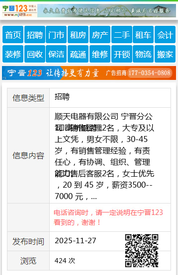 顺天电器有限公司 宁晋分公司 高新诚聘: