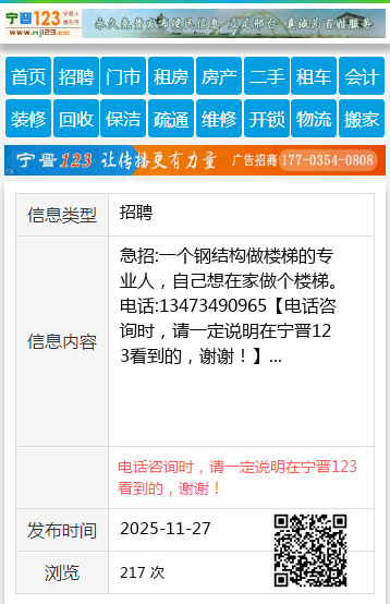 免责声明:本栏目信息由网友自行发布,宁晋123不承担任何责任!提高警惕,谨防诈骗!做推广、做信息置顶!请加宁晋123客服微信:ningjin009