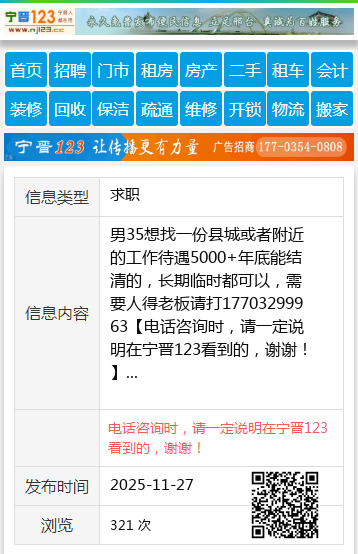 男35想找一份县城或者附近的工作待遇5000+年底能结清的,长期临时都可以,需要人得老板请打17703299963