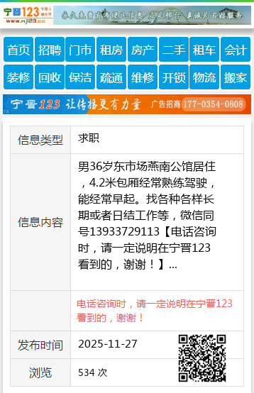 男36岁东市场燕南公馆居住,4.2米包厢经常熟练驾驶,能经常早起。找各种各样长期或者日结工作等,微信同号13933729113