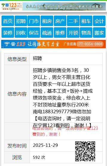 招聘乡镇销售业务3名,30岁以上,男女不限主营日化百货要求一年以上超市送货经验,基本工资+饭补+提成绩效各项奖金,综合收入上不封顶地址童泰东行200米南电18832997779微信勿加 【电话咨询时,请一定说明在宁晋123看到的,谢谢!】 |