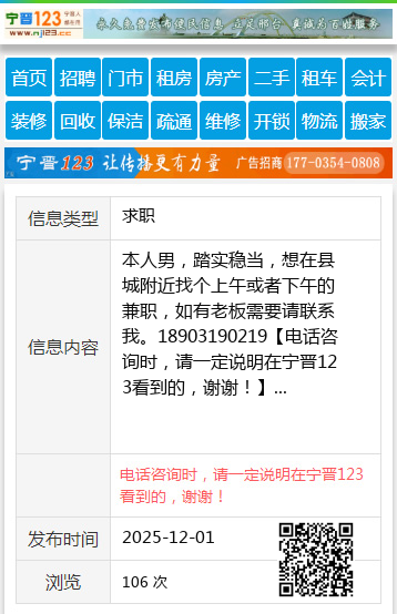 免责声明:本栏目信息由网友自行发布,宁晋123不承担任何责任!提高警惕,谨防诈骗!做推广、做信息置顶!请加宁晋123客服微信:ningjin009