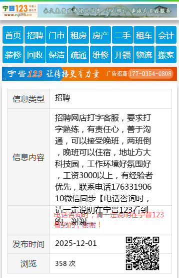 招聘网店打字客服,要求打字熟练,有责任心,善于沟通,可以接受晚班,两班倒,晚班可以住宿,地址方大科技园,工作环境好氛围好,工资3000以上,有经验者优先,联系电话17633190610微信同步 【电话咨询时,请一定说明在宁晋123看到的,谢谢!】 |