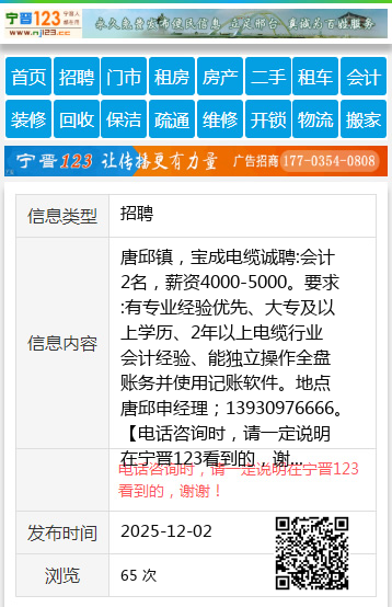 唐邱镇,宝成电缆诚聘:会计2名,薪资4000-5000。要求:有专业经验优先、大专及以上学历、2年以上电缆行业会计经验、能独立操作全盘账务并使用记账软件。地点唐邱申经理;13930976666。 【电话咨询时,请一定说明在宁晋123看到的,谢谢!】 |