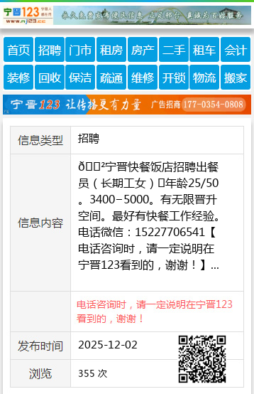 🈲宁晋快餐饭店招聘出餐员(长期工女)✅年龄25/50。3400−5000。有无限晋升空间。最好有快餐工作经验。电话微信:15227706541 【电话咨询时,请一定说明在宁晋123看到的,谢谢!】 |