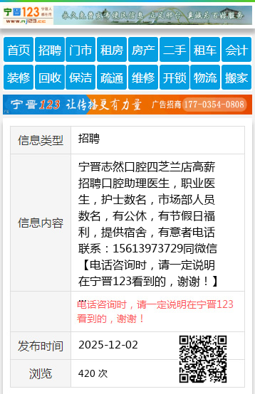 | 防骗提醒: | 宁晋123(www.nj123.cc)提醒您:手工活、网络兼职、刷单,都是骗子!凡以各种名义收取费用的都是骗子!找工作是往兜里挣钱,让你往外掏钱的都是骗子!异地招聘请提高警惕,谨防诈骗! |