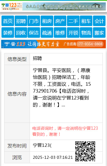 免责声明:本栏目信息由网友自行发布,宁晋123不承担任何责任!提高警惕,谨防诈骗!做推广、做信息置顶!请加宁晋123客服微信:ningjin009