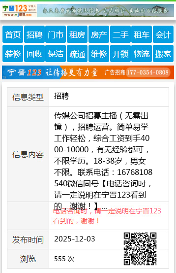 传媒公司招募主播(无需出镜),招聘运营。简单易学工作轻松,综合工资到手4000-10000,有无经验都可,不限学历。18-38岁,男女不限。联系电话:16768108540微信同号 【电话咨询时,请一定说明在宁晋123看到的,谢谢!】 |