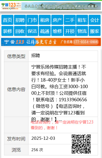 宁晋乐扬传媒招聘主播!不要求有经验。会说普通话就行!18-40岁女士!新手小白可教。综合工资3000-10000上不封顶!公司提供住宿!联系电话:19133960656(微信号) 【电话咨询时,请一定说明在宁晋123看到的,谢谢!】 |