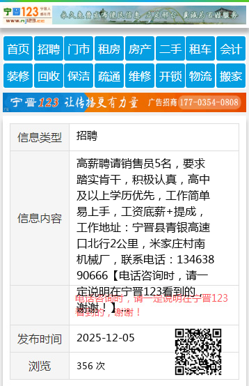 | 防骗提醒: | 宁晋123(www.nj123.cc)提醒您:手工活、网络兼职、刷单,都是骗子!凡以各种名义收取费用的都是骗子!找工作是往兜里挣钱,让你往外掏钱的都是骗子!异地招聘请提高警惕,谨防诈骗! |