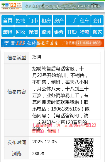 招聘纯售后电话客服,十二月22号开始培训,不销售,不销售,倒班,每天八小时,月公休八天,十八到三十五岁,业务简单易上手,有意向抓紧时间联系我啦!联系电话:19061895105(微信同号) 【电话咨询时,请一定说明在宁晋123看到的,谢谢!】 |