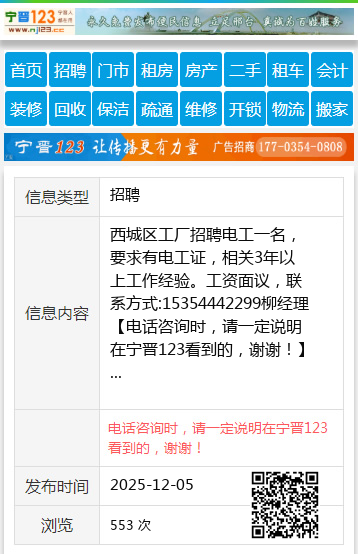 免责声明:本栏目信息由网友自行发布,宁晋123不承担任何责任!提高警惕,谨防诈骗!做推广、做信息置顶!请加宁晋123客服微信:ningjin009