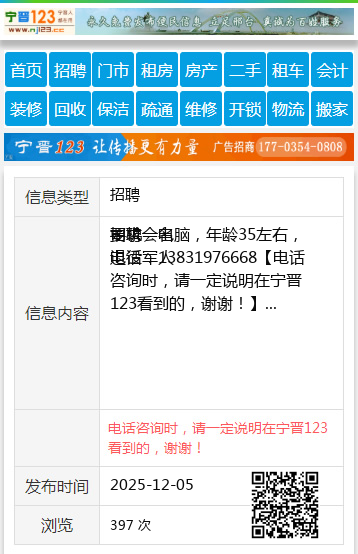 免责声明:本栏目信息由网友自行发布,宁晋123不承担任何责任!提高警惕,谨防诈骗!做推广、做信息置顶!请加宁晋123客服微信:ningjin009