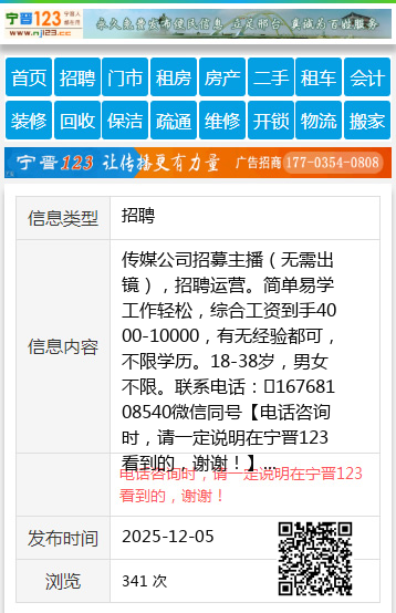 传媒公司招募主播(无需出镜),招聘运营。简单易学工作轻松,综合工资到手4000-10000,有无经验都可,不限学历。18-38岁,男女不限。联系电话:16768108540微信同号 【电话咨询时,请一定说明在宁晋123看到的,谢谢!】 |
